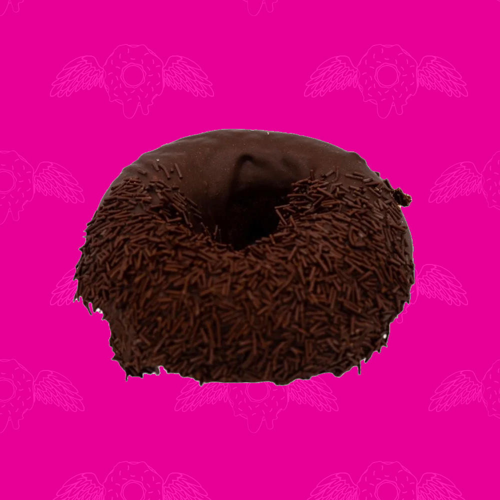The Ultimate Chocolate Cake Donut with chocolate glaze and real chocolate sprinkles.