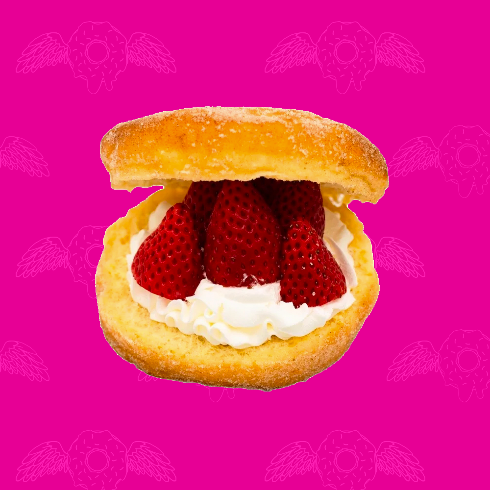Coated in the perfect cinnamon sugar blend and filled with fresh whipped cream and strawberries.